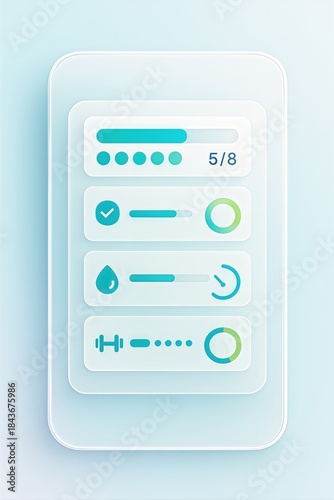 User interface design showcasing interactive dashboard elements including sliders buttons and progress bars representing data visualization and healthy lifestyle metrics for digital engagement
