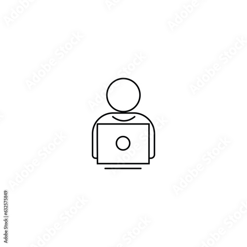 User working on laptop vector line icon, linear concept, outline sign, symbol