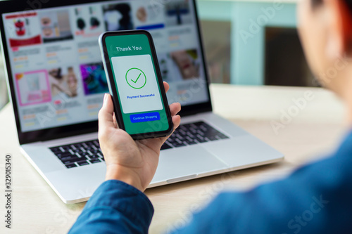 using smartphone and laptop online shopping