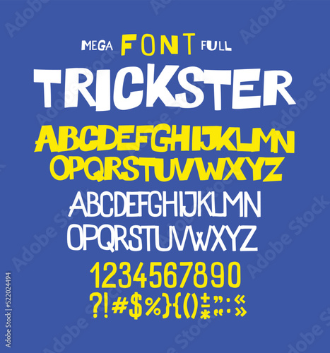 Usual display font for inscriptions. Vector. Latin capital letters. Alphabet for cheerful informal inscriptions. All letters are saved separately. Symbols for logos.