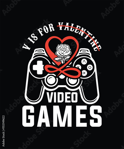 V IS FOR VALENTINE VIDEO GAME TSHIRT DESIGN