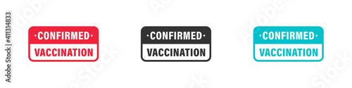 Vaccinated. Stamp sign. Vaccine confirmation. I got vaccinated. Flat vector logo. Vector illustration