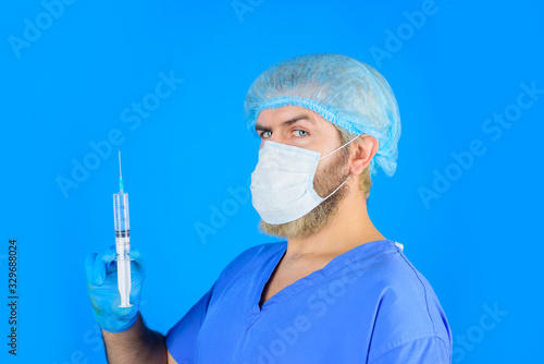Vaccination. Doctor with syringe. Injection. Antibiotics. Doctor with syringe preparing for injection. Doctor makes vaccination. Medicine. Vaccination for people.