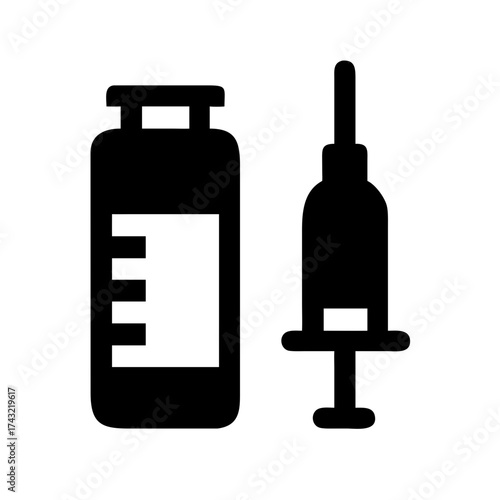 Vaccine vial and syringe icon for medical use