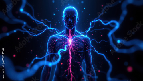 Vagus Nerve Stimulation - An artistic representation of electrical signals along the vagus nerve, illustrating the concept of neural stimulation for therapeutic purposes.