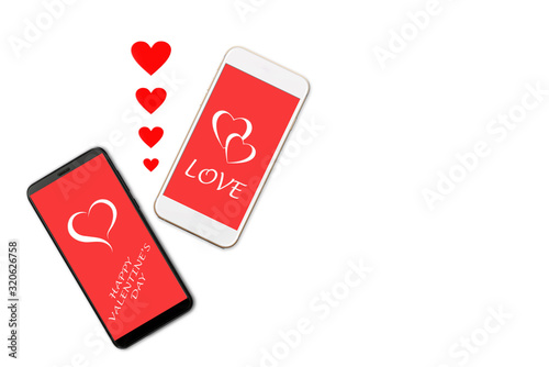 Valentine day concept, love message - hearts flying out smartphone, Isolated on white background