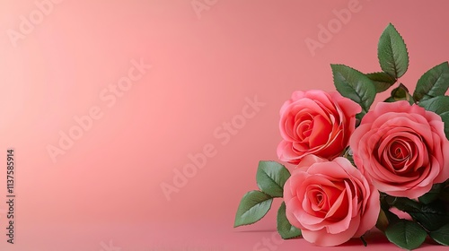 Valentine rose concept. Beautiful pink roses against a soft pastel background, perfect for various design projects.