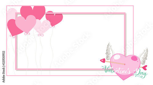 Valentine theme with pink hearts on the frame