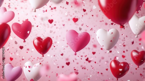 Valentine's Day banner template design with hearts balloons and romantic elements composition background with copy space