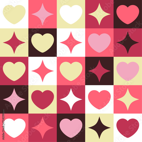 Valentine's Day. love, heart and sparkling star, wrapping paper geometric pattern, pink and yellow pattern, elements pattern. chess pattern design. Geometric shape for wrapping, background