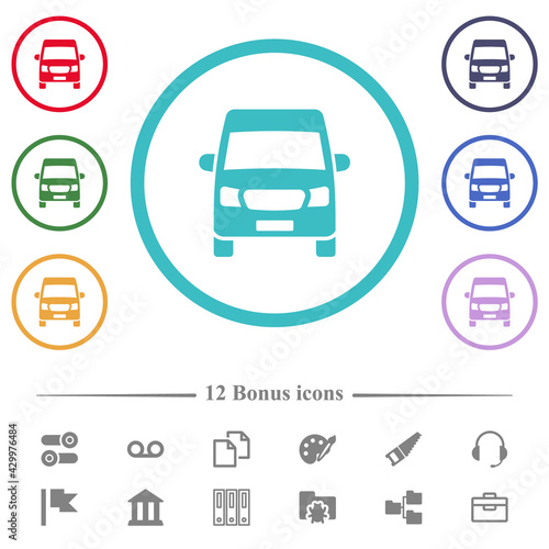 Van front view flat color icons in circle shape outlines
