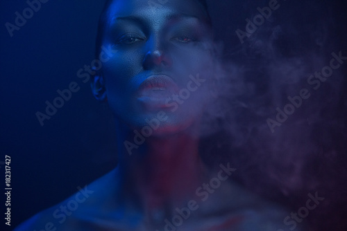 Vape Party, Nightlife. Beautiful Sexy Woman smoking