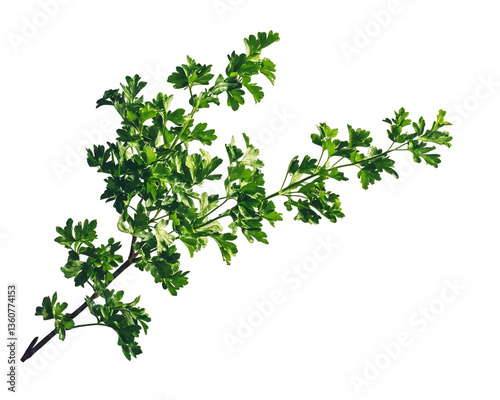 Variegated Green Sprig with Leaves on Transparent Background, PNG