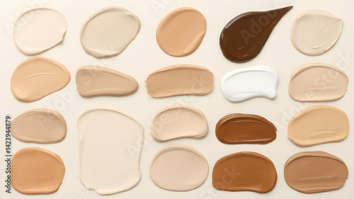 Variety of foundation shades on neutral background