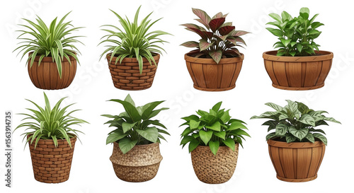 Variety of Indoor Plants in Decorative Pots for Home and Office Decor, isolated on a transparent background
