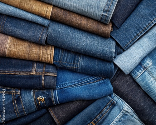 Variety of rolled denim jeans in different shades