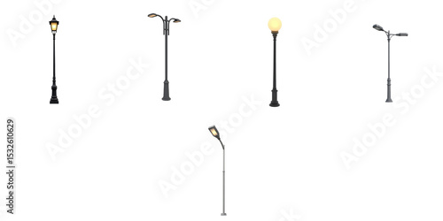 variety of street lamps in different styles and designs completely isolated on transparent background for graphic use and digital composition