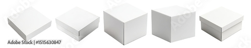 Various Angles of Plain White Boxes for Packaging and Storage Use, Isolated on Transparent, white background