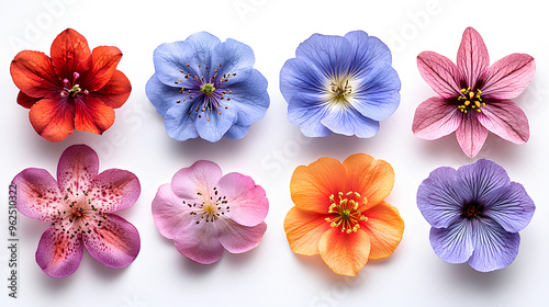 various beautiful blooming flowers isolated on white background
