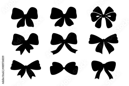 Various Bow Black Silhouette Vector Illustration