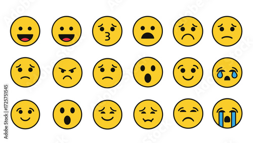 Various Emoji Faces in a Vibrant Digital Artwork Setting