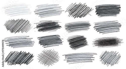 Various shades of graphite pencil strokes create a collection of textured design elements.