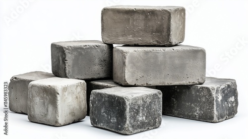 various sizes of concrete blocks, isolated white background.