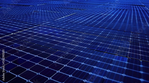 Vast Array of Solar Panels Capturing Renewable Energy in Blue Landscape