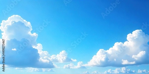Vast, clear blue sky on a sunny day, fluffy white cumulus clouds scattered across the expanse Perfect for backgrounds, travel, and nature projects , altitude, elevation, sunshine