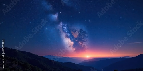 Vast night sky, countless stars, panoramic view, constellations, glittering