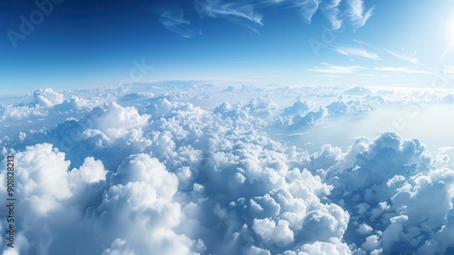 Vast sky filled with cottonlike clouds and a gradient of blue hues, sky panorama, spaciousness