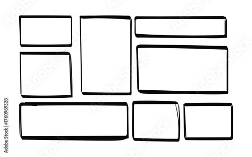 Vector art of collection of handdrawn rectangular frames and boxes isolated on a
