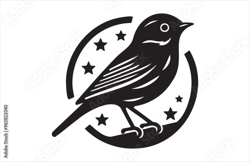 Vector art of European small bird of silhouette vector illustration