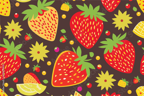 Vector background with red and yellow berries of strawberries.