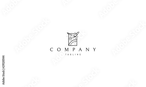 Vector black logo on which an abstract image of the universe in the form of planets and stars.