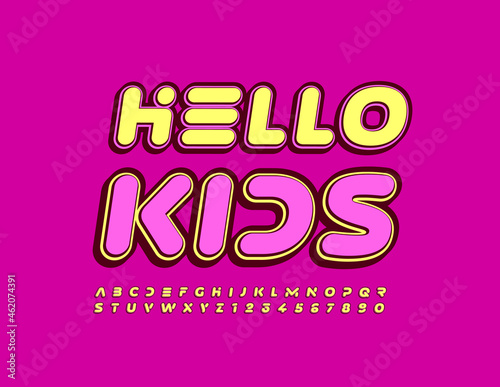 Vector bright Sign Hello Kids. Creative Bright Font. Modern Alphabet Letters, Numbers and Symbols