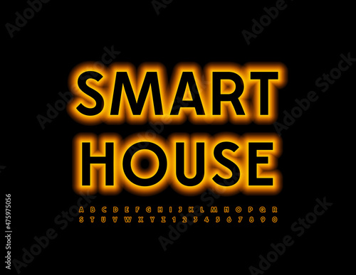 Vector bright Sign Smart House with bright Neon Font. modern Glowing Alphabet. Illuminated Letters and Numbers set
