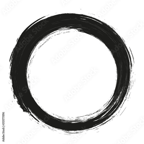 vector brush strokes circles of paint on white background. Ink hand drawn paint brush circle. Logo, label design element vector illustration. Black abstract grunge circle. Frame