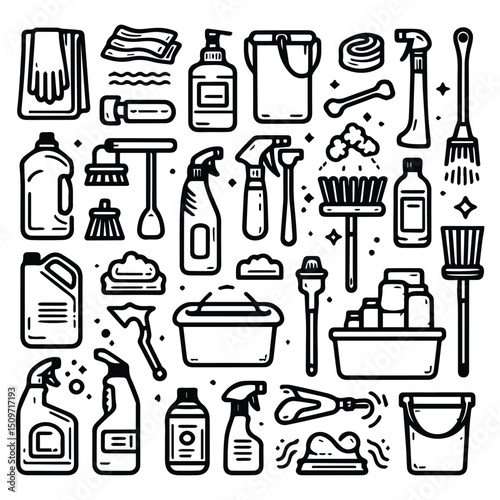 vector clip art set of cleaning elements, simple line style icons