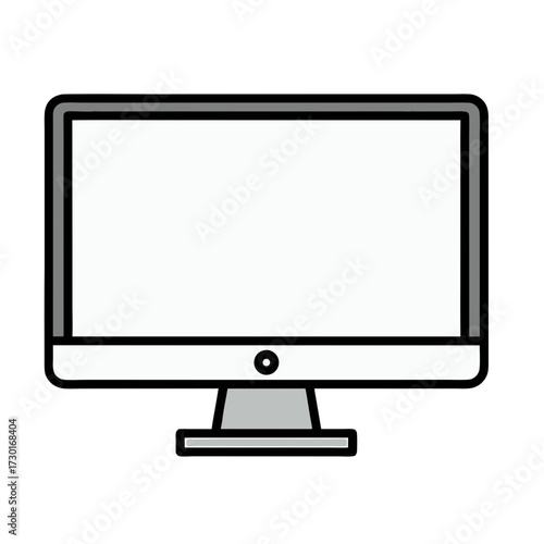 Vector Computer Monitor with Blank White Screen and Gray Frame on White Background