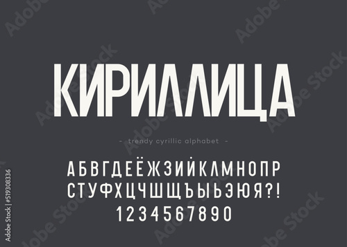 Vector cyrillic modern alphabet. Russian font for decoration, logo, party poster, t shirt, book, greeting card, sale banner, printing on fabric. Cool typography typeface. Trendy font. 10 eps