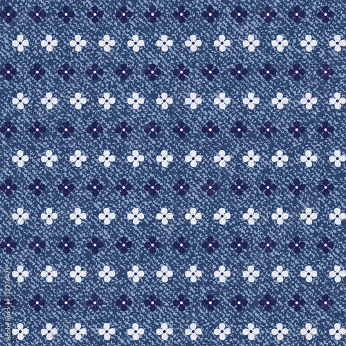 Vector Daisies seamless pattern. Denim floral wallpaper. Blue Jeans background with flowers.