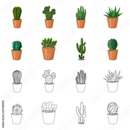 Vector design of cactus and pot icon. Collection of cactus and cacti vector icon for stock.