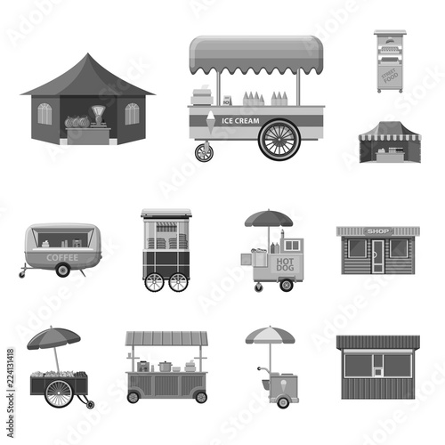 Vector design of market and exterior symbol. Set of market and food stock symbol for web.