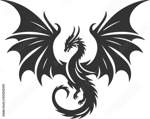Vector drawing silhouette of a flying dragon illustration