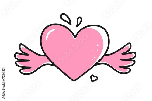 Vector element heart with wings for Valentines Day. Hand-drawn love symbols in a linear style. Isolated on a white background.