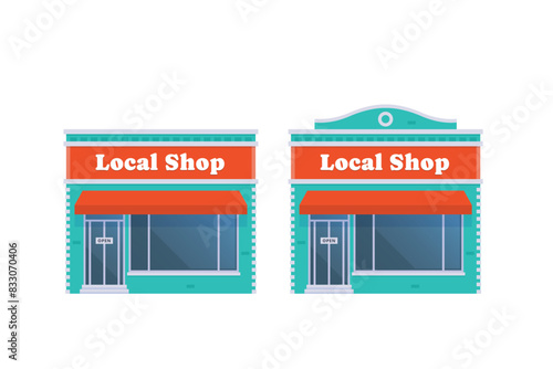 Vector element of store and shop building, grocery building front view detailed flat design style for city illustration