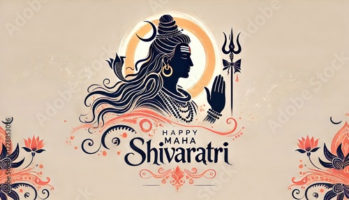 Vector flat illustration of the Shiva symbol with a trident and decorated shiny stone happy Maha Shivratri festival celebration banner or greeting card design.illustration