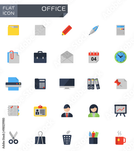 Vector flat office icons set. Office Icon Object, Office Icon Picture, Office Icon Image - stock vector