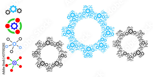 Vector gear transmission mosaic is created from repeating recursive gear transmission icons. Recursion collage from gear transmission. Some other icons are present in this vector.